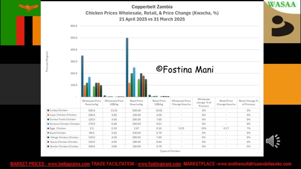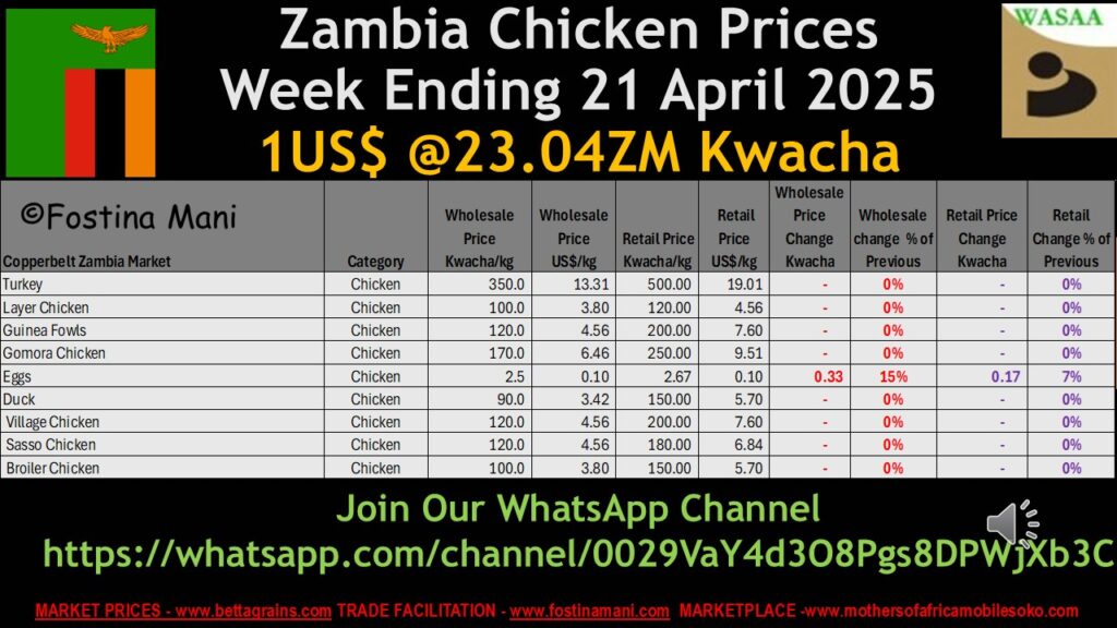- The price of eggs did increase by 0.33Kwacha (15%) wholesale and 0.17kwacha (7%) retail