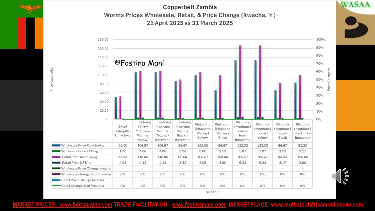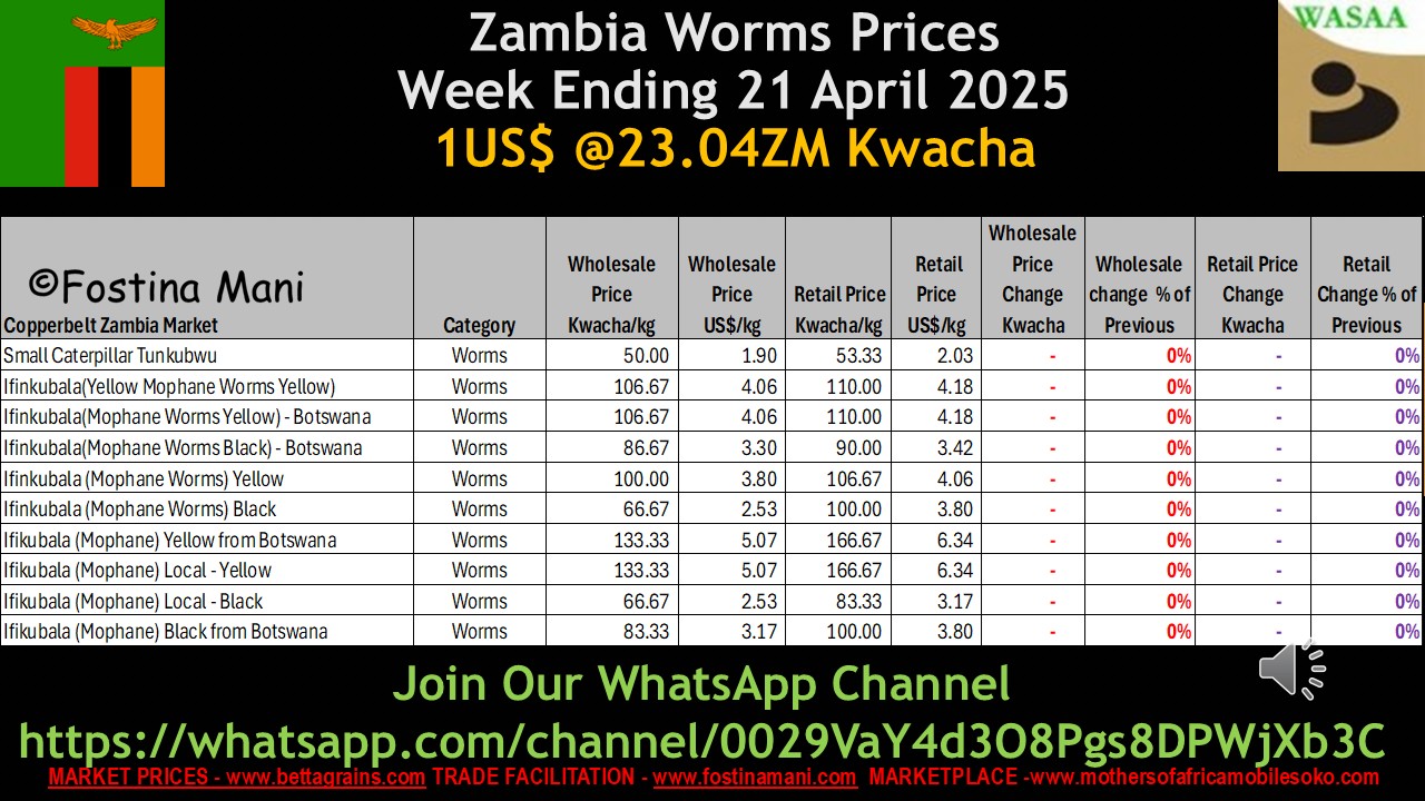 Worm prices as of 21 April 2025 in Comparison to 31 March 2025 remained unchanged.